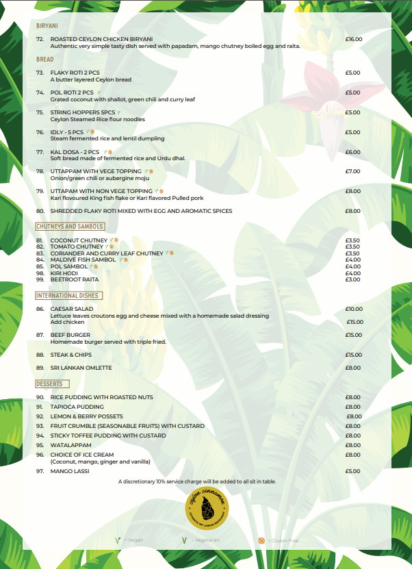 Have a look at our Authentic Sri Lankan Main Menu including Nibbles, Starters, Meals and Desserts below or download our PDF.